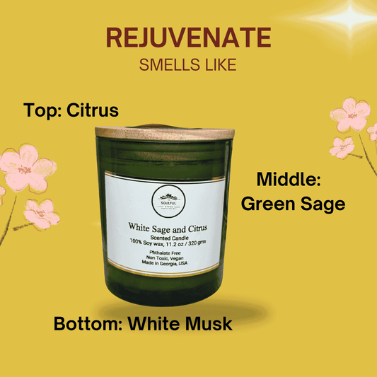 The Soulful Store 11.2 oz White Sage and Citrus Soy Wax Candle – Non Toxic, Vegan, 80+ Hour Burn, Perfect as Gifts and for Interior Decoration