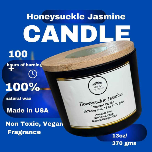 The Soulful Store Honeysuckle Jasmine Soy Candle, 13 oz, 100+ Hour Burn Time, Citrus Floral Scent, Made in USA